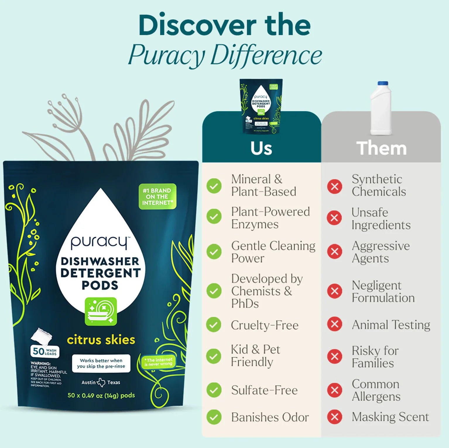 - Let Puracy dishwasher detergent pods do the hard work for you.